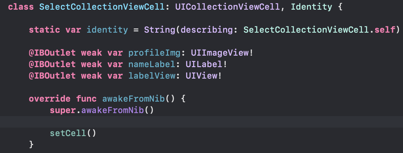 이렇게 Cell의 클래스 내의 awakeFromNib()에서 setCell()을 호출하면, 모든 셀에서 한 번씩만 호출되고 재사용될때는 호출되지않음.