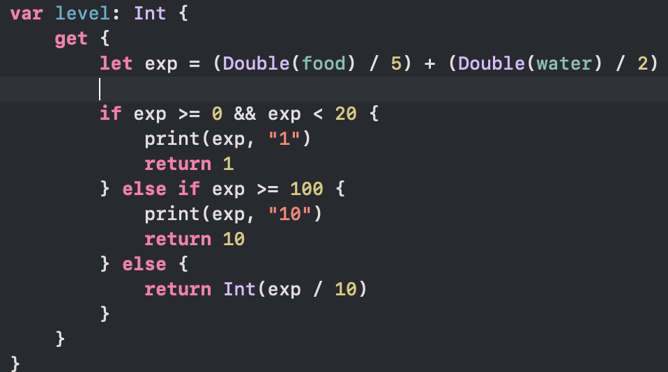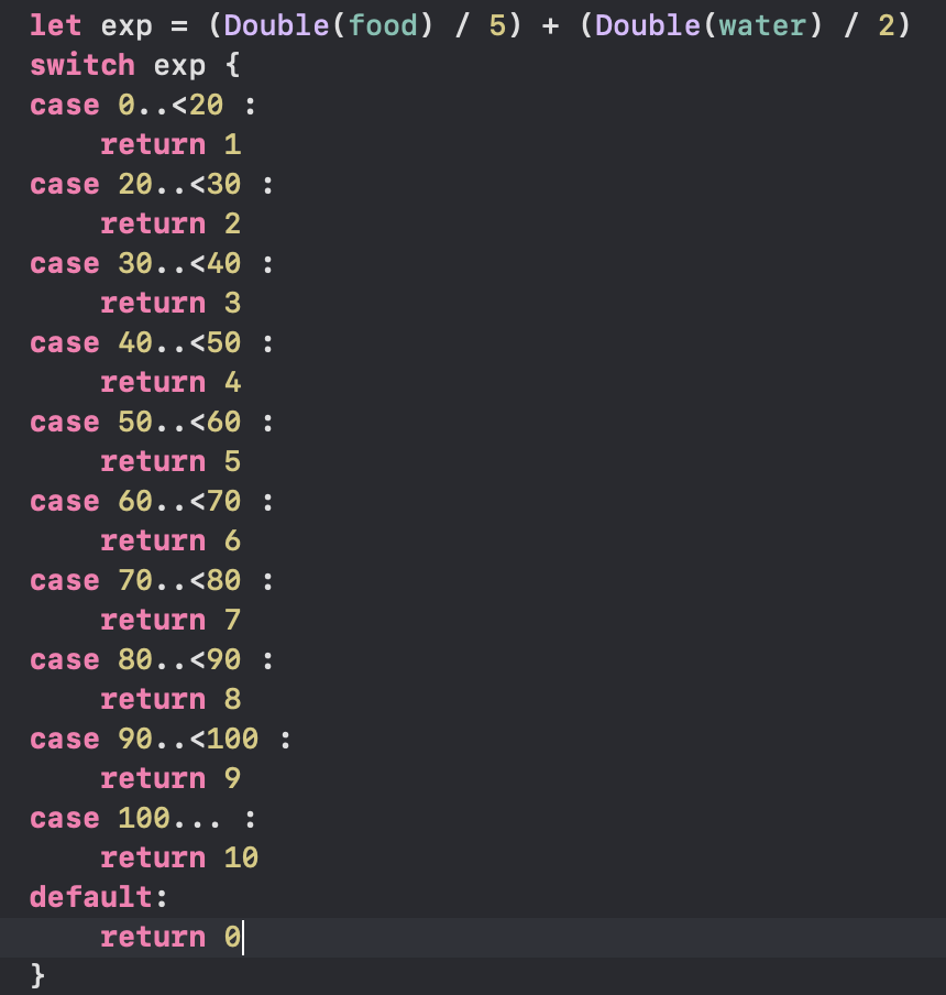 원래 아래처럼 쓸데없이 스위치로 모든 경우를 다 따져주었는데 생각해보니 가운데는 10으로 나누면 레벨이 나온다.
