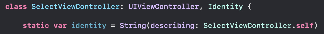 4. 뷰컨트롤러마다 identity라는 타입 프로퍼티를 생성해줬는데, 공통으로 사용하는 방법