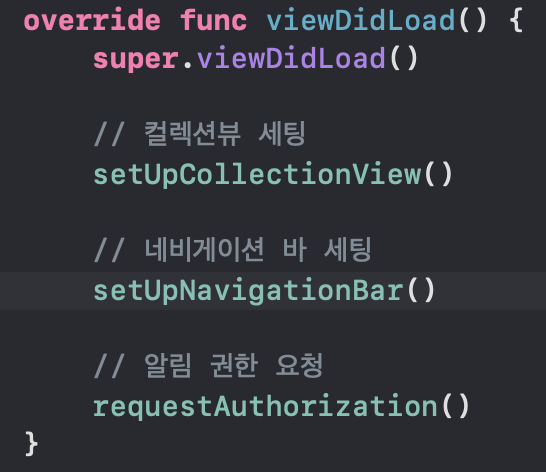 5. 뷰컨트롤러에 필요한 세팅을 할 때, 메서드로 해보기