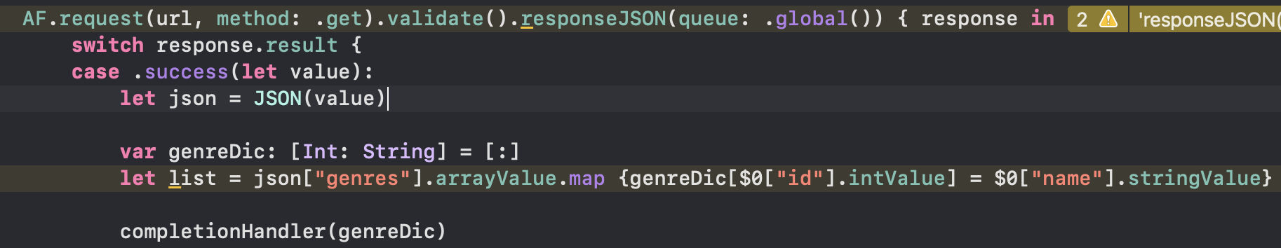 마지막에 completionHandler의 매개변수로 list를 넘겨주어 뷰컨트롤러의 코드에서 사용할 수 있게함.