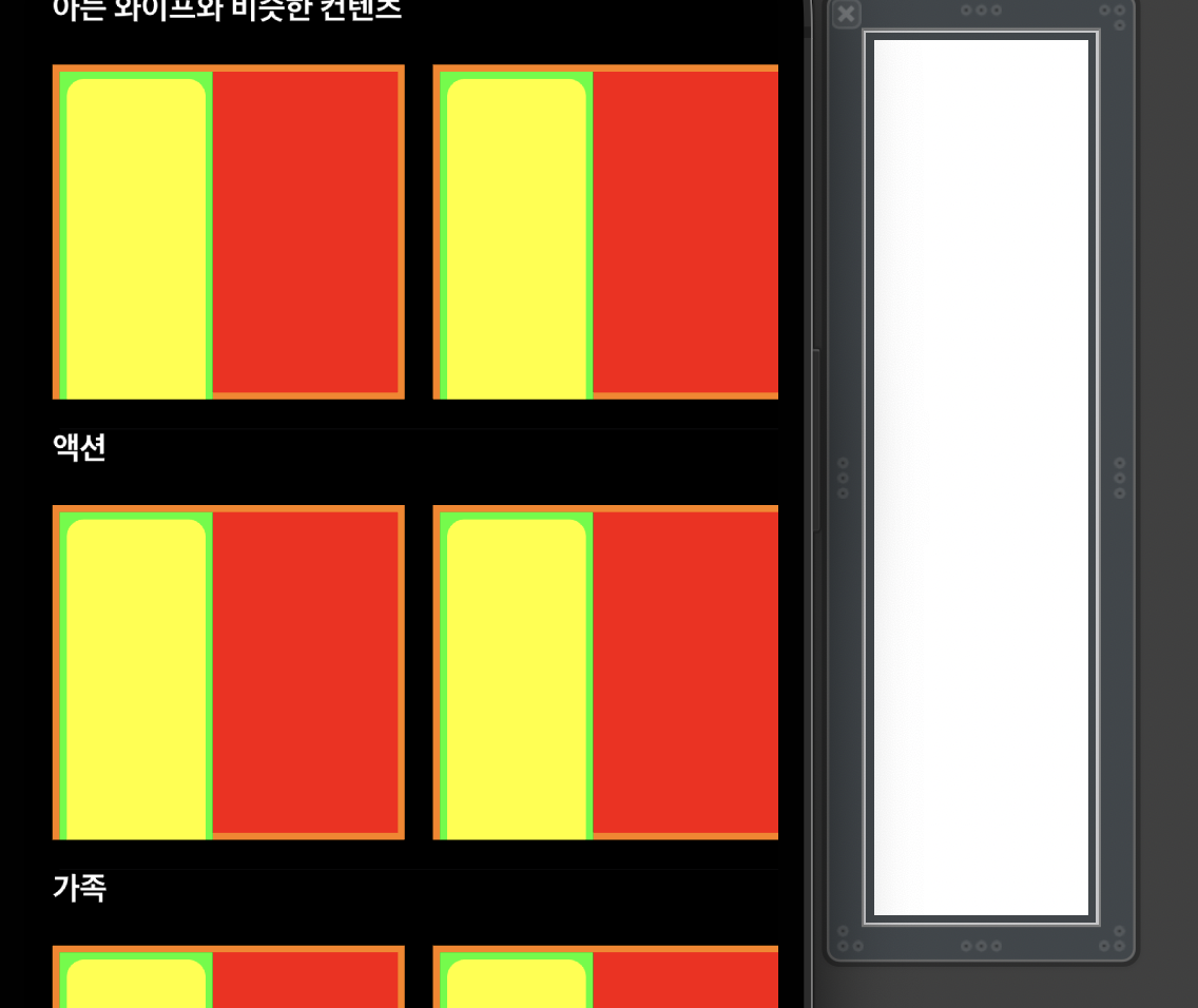 아무튼 왼쪽과 위쪽만 활성화되어있어 왼쪽 위부터 xib에서의 모양대로 셀을 그렸던 것 같음.