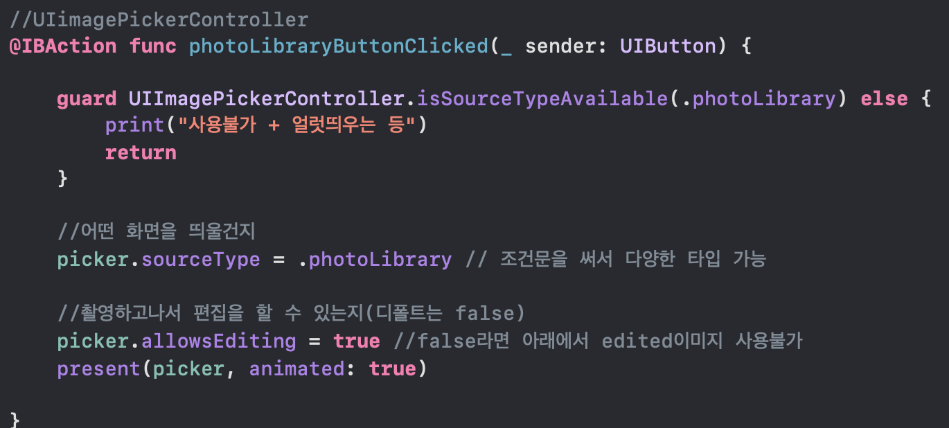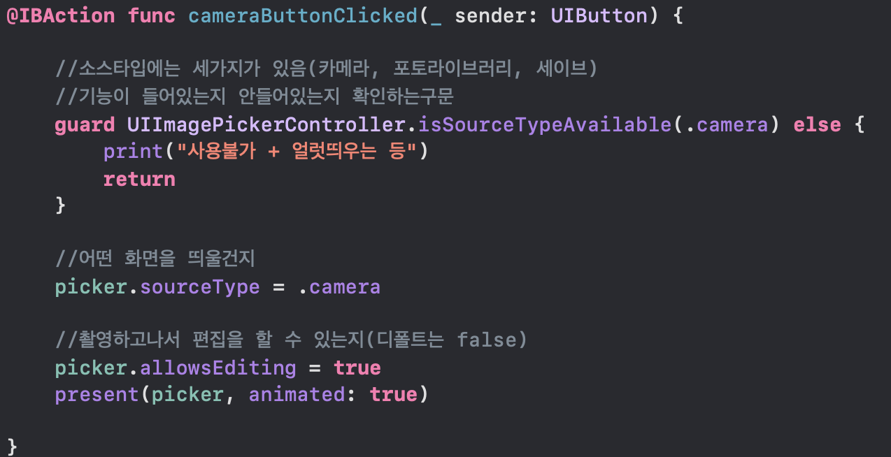 sourceType은 enum형태로 camera, photoLibrary, savedPhotosAlbum을 가지고 있음.