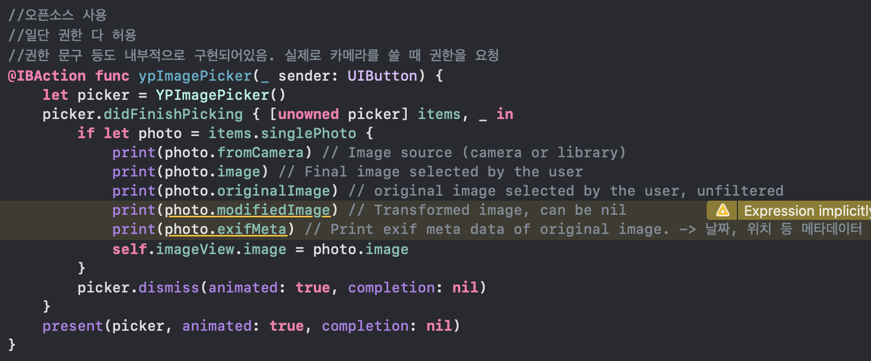 그래서 촬영만 UIImagePickerController에서 하고, 나머지는 PHPickerViewController에서 하는걸 권장함.